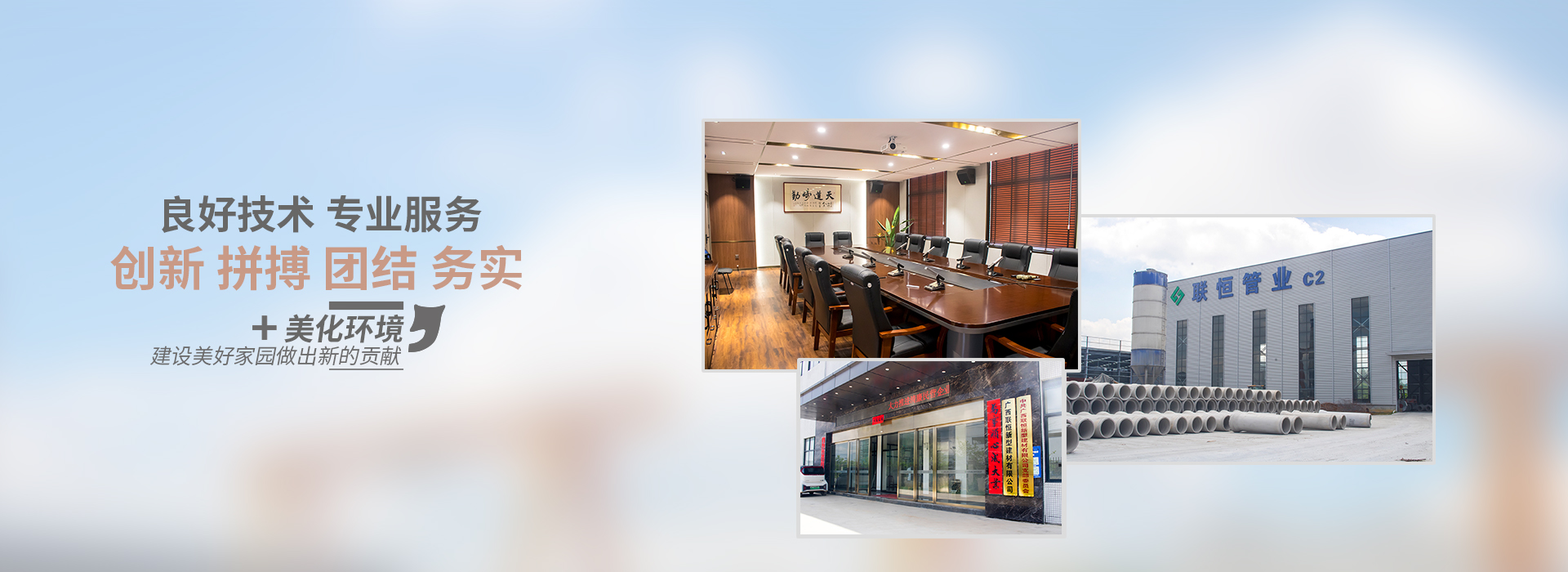 廣西聯恒新型建材有限公司成立于2017年,前身是柳州聯恒水泥制品有限公司。是柳州市較具規模的給排水管生產企業。公司自2002年以來,污水管道專項生產量率柳州之先。柳州市所有的污水處理廠管網收集,載污管網的主要供應商,柳州市較先取得工業生產許可證并由國家質量技術監督部排水管產品抽檢唯一符合資質的廠家。柳州市F型非開挖鋼筋混凝土頂管最先生產且生產量大于柳州同行的頂管生產量的總和。是進駐柳州中鐵、中交、中建、中航等央企的戰略合作伙伴。